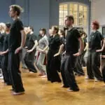 The word “form” in Chinese martial arts refers to a sequence of movements that the student learns and which trains the body in the postures and steps necessary to that martial art, and developing the flexibility and strength on which it relies. Contained within the movements of the form are the fighting techniques of that martial art. Tai Chi’s forms are no exception to this, hiding within each movement a series of possible defences, strikes, joint-locks and throws. The forms of Yang style Tai Chi tend to be performed slowly so that maximum feeling can be developed by the student, who learns to be grounded, to shift their weight in a controlled manner, soften and relax the body, and learn the precise dynamics of each movement. At Mei Quan, beginners start by learning the 24-step Beijing short form, probably the most common Tai Chi form practised today across the world. As students advance, they will learn other forms taught in the school, including the 108-step long form, weapons forms, energetic “martial” forms and two-person forms.