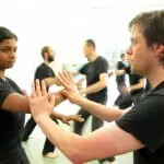 “Pushing hands” exercises are partner exercises in which one learns to feel one’s own and another person’s balance, and to develop such skills as sensitivity, timing, co-ordination and mental calm and focus. Pushing hands thus teaches some of the key skills and abilities on which Tai Chi as a martial art relies. Through these the student can also learn the mental skills of relaxation under pressure, and winning by yielding, skills that can also be applied throughout life.